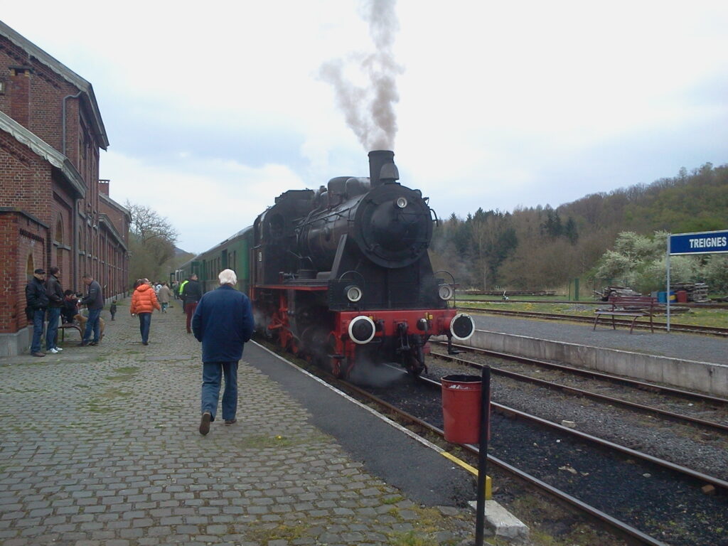 Transférée tractée par une locomotive diesel SNCB d’Arlon à Mariembourg (LMG) les 10 et 11 août 1984.