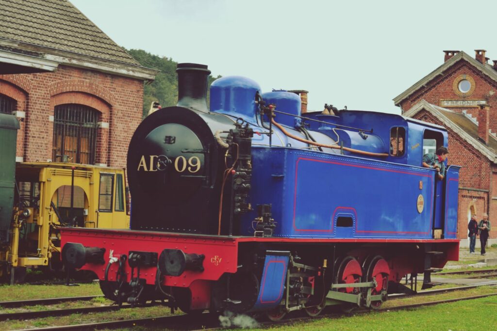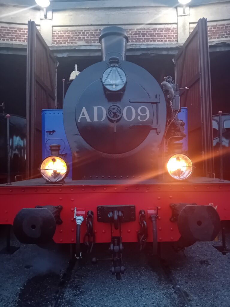 La locomotive à vapeur AD09 était en service au Charbonnage André Dumont à Waterschei. Le CFV3V a acquis au départ trois machines de ce type la AD 05 et la AD 08, engins aux caractéristiques quasi identiques. Ces machines étaient dévolues à la manœuvre des wagons dans les emprises du charbonnage. Elle parvint par ses propres moyens à Mariembourg le 20 septembre 1980. Cette machine est propriété du CFV3V. Elle a été repeint totalement en bleu noir et rouge